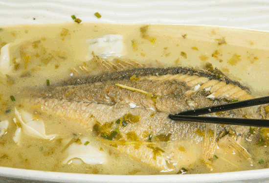 这道雪菜大黄鱼,鱼肉瓣状的肉质、爽滑多汁的口感,搭上用雪菜“吊”出来的那点鲜味,寓意年年有余。