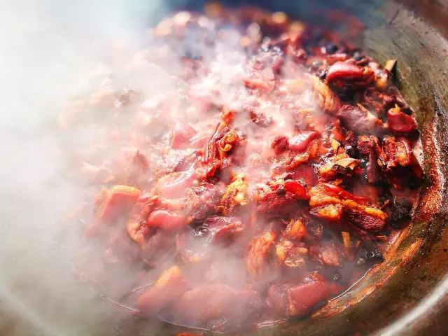 米粉扣肉是皖北地区很多人家的最爱。五花肉加上糯米做成的米粉,配上八角、葱段、酱,放到碗里上锅蒸,蒸到一定火候出了油,吃时一馏扣放在碟子里,寓意吉祥蒸蒸日上。