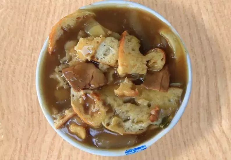 牛肉小饭,是张掖独有的一种面食早餐,入口牛肉嫩滑爽口,面丁疙瘩爽滑无比,口感很好。牛肉小饭选取的新鲜的黄牛肉,用面粉加水做成面团,将面片用刀切成饭粒大小的方块。刚出炉的小饭热气腾腾,汤中的面粒粒都分的很清,有着晶莹剔透的外表。再配上浓浓胡椒的香辣味,非常的诱人。