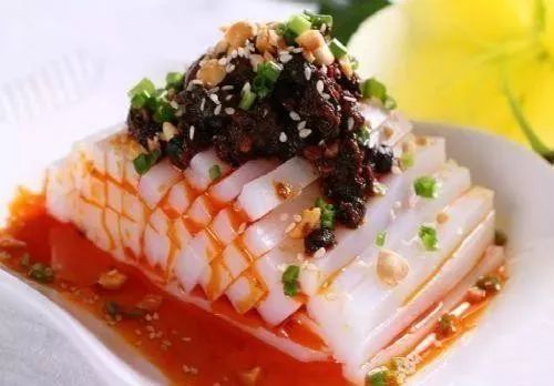 采用花荞粒,脱壳之后反复搓揉,取其淀粉,经过多次沉淀,然后细细浇入沸水之口,同方向搅动,温火熬煮而成,色白如奶,细滑绵软,及其晾凉之后,方才调制或是浆水,或是用醋、酱等为汁,入口时,含之如饴,美味十足。