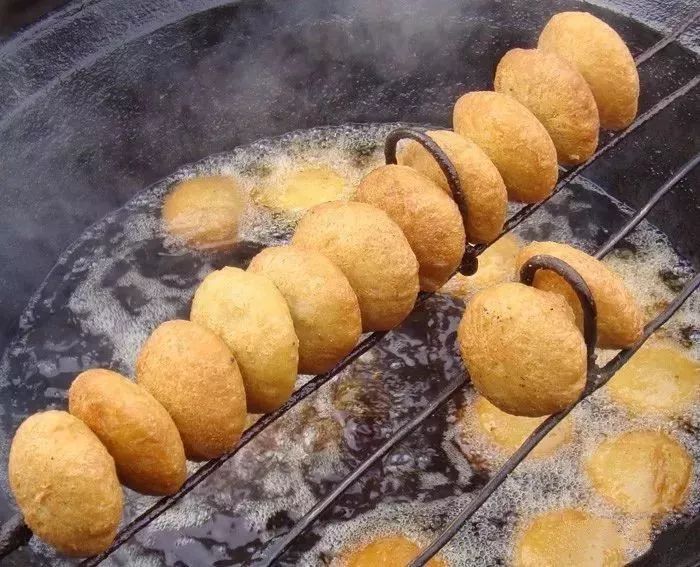 张掖油糕——色泽金黄,松软酥脆,香甜可口。以上等清油、细白面粉、精糖为原料,先将面粉用开水烫至半熟,用冷水反复搅和,再揉成鸡蛋大的面团,包糖、芝麻、桂花做的馅子,入油锅炸成,是张掖人最喜爱的小吃之一。