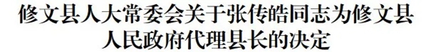 决定张传皓为代理县长!修文县人民代表大会常务委员会任免名单