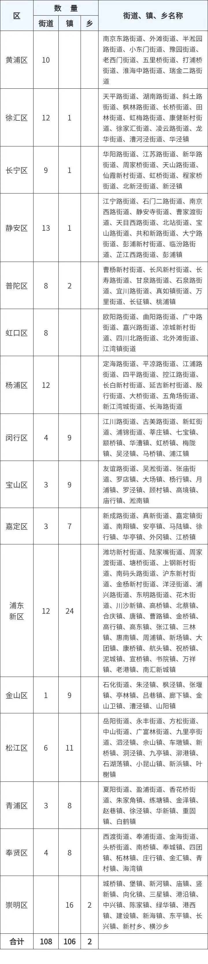 市民政局公布最新上海行政区划名称表