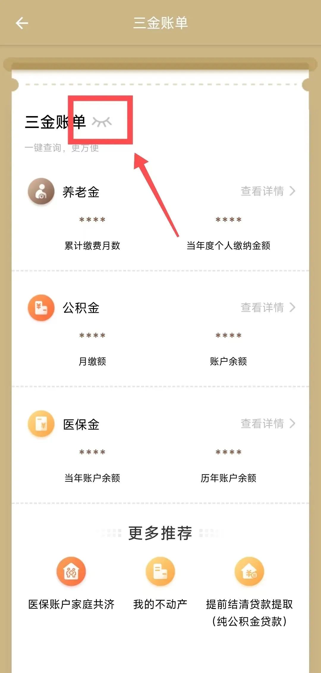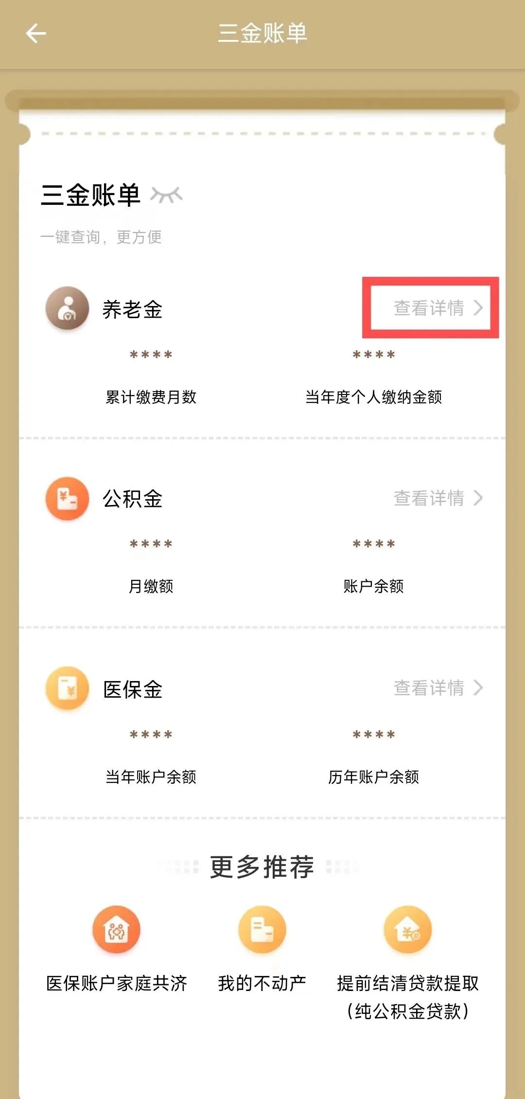 服务入口:“随申办市民云”APP首页点击“三金账单”,或在搜索框搜索关键词“三金账单”,进入对应服务,即可一键查询养老金、公积金和医保金账户明细。
