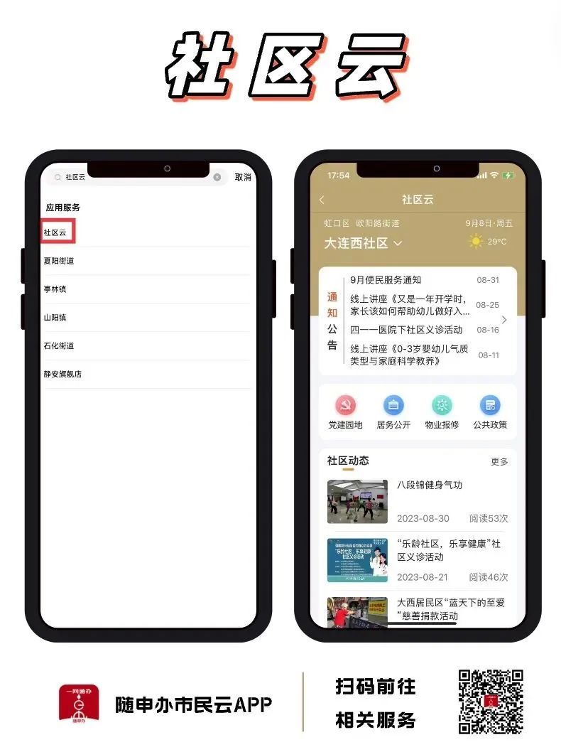 社区云内含党建园地、居务公开、物业保修、公共政策、社区动态、通知公告等板块,和我们上海市居民息息相关,涉及生活中的到方方面面。