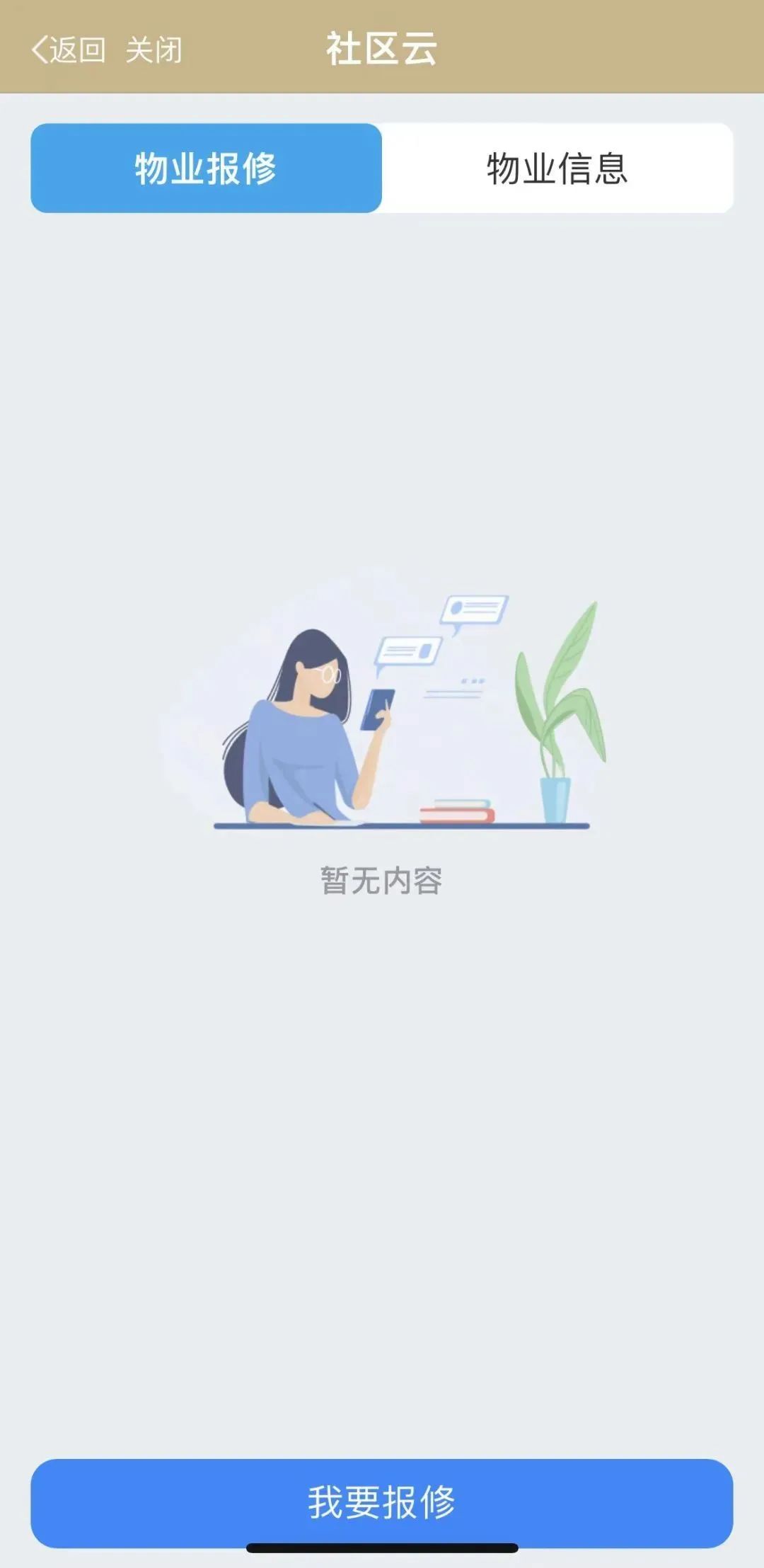 物业报修:当您电话说不清,到前台报修又太麻烦时,可以来这线上物业保修啦!点击“我要报修”,按页面提示填写信息即可!