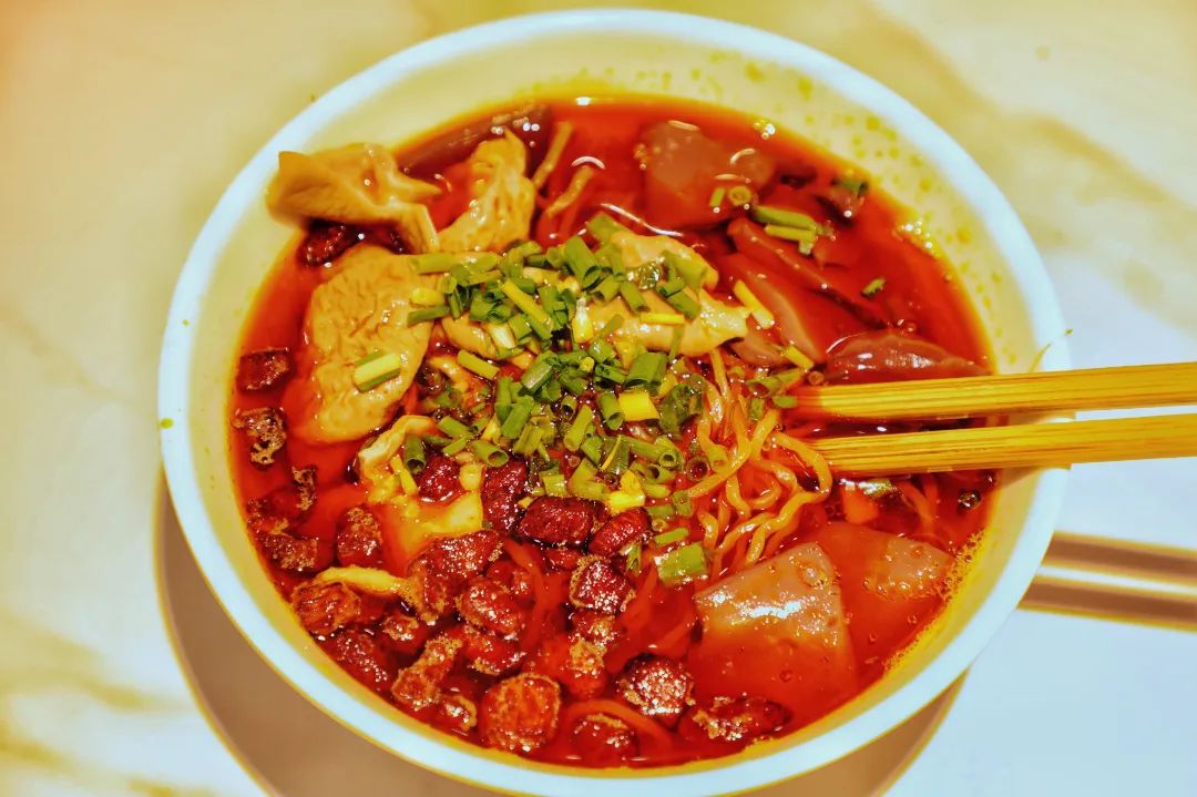 贵阳特色,一定要尝尝!肠旺面具有血嫩、面脆、辣香、汤鲜的特点。面条很有弹性,血旺细嫩不腥,肥肠满口生香,红汤油而不腻,吃完了面一定记得喝汤,满口的鲜香美味,超满足!