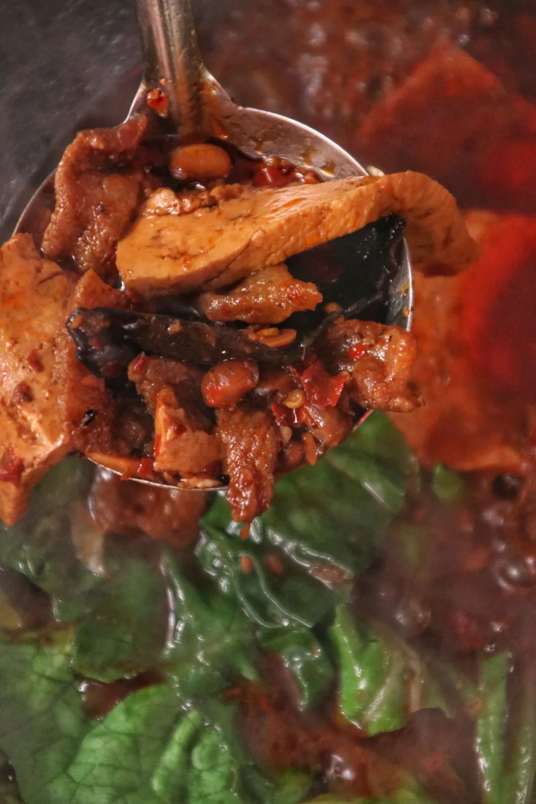 现切的肉,现炒的锅底,闻起来有点臭,吃起来“真香”,豆豉喷香,汤底浓郁,拌饭下菜一绝,绝对的地道风味。