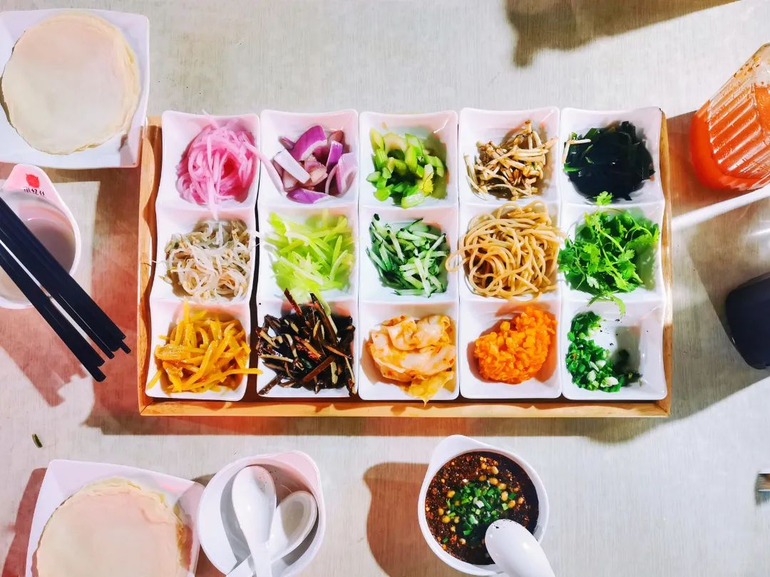 贵阳地道小吃,取一块薄薄的面皮,再按照个人口味卷入海带丝、土豆丝、折耳根等各类切丝的素菜,待丝娃娃裹好后,用勺子舀特色汤汁从开口处淋透后即可食用。
