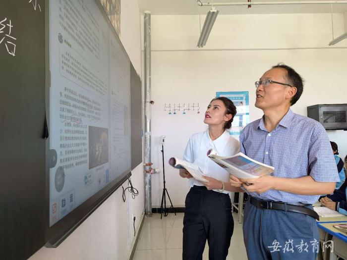 硬件有了,学校最缺的还是专业化教师队伍。为破解这一难题,2021年,安徽省第四批第二期组团式教师队伍进入学校,并通过“青蓝工程”开展师徒学科结对。援疆教师立足课堂教学、班级管理和学科教研,传授先进教育教学理念与经验,带动本地教师快速成长。