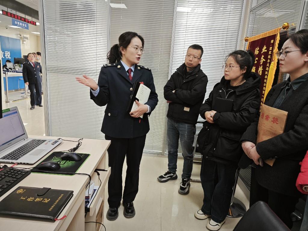 县局党委委员、副局长左辉、城关税务分局副局长孔军林及第一税务分局全体成员与涉税中介机构代表面对面交流,对开展近期纳税信用评价工作提出相关落实要求。座谈交流后,中介代表走进办税服务厅,全流程观摩“导税预审—窗口办理—后台流转”各环节,重点了解了自助办税区、征纳互动区和办税服务区的业务办理情况,对以“事项全程网上办”为主体、以“征纳互动辅导办”为助力、以“自助就近便利办”为拓展、以“线下进厅高效办”为支撑的多层次递进式办税缴费服务进行了深入了解和体验,通过角色互换,中介代表对税务人员的服务态度和专业能力表示认可,更加了解纳税人端与税务人端平台的异同,带来办税新体验。