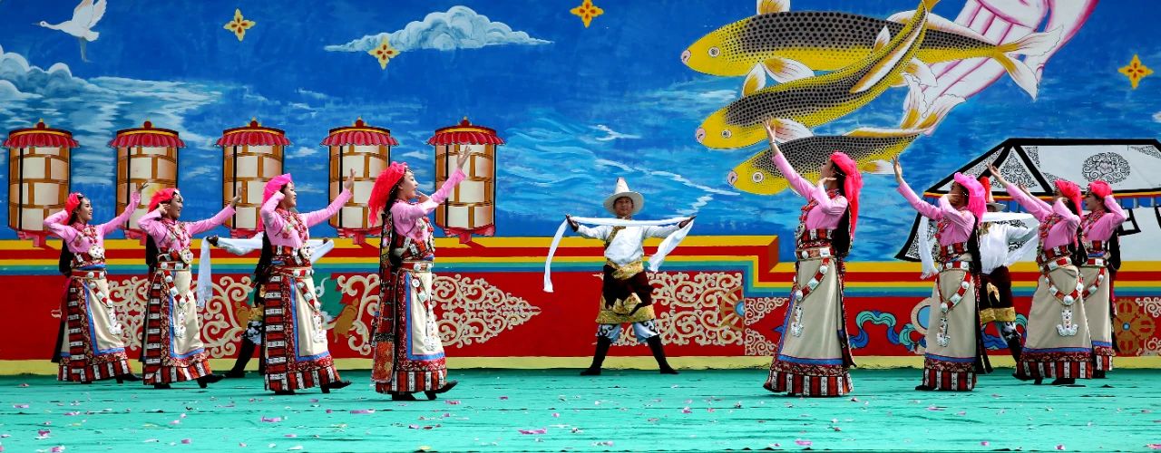 在一望无垠的刚察大草原上,在青藏生态主题馆“坛城”前,热情好客的藏族同胞演绎藏族特色锅庄舞,表达对美好生活的歌颂和向往。