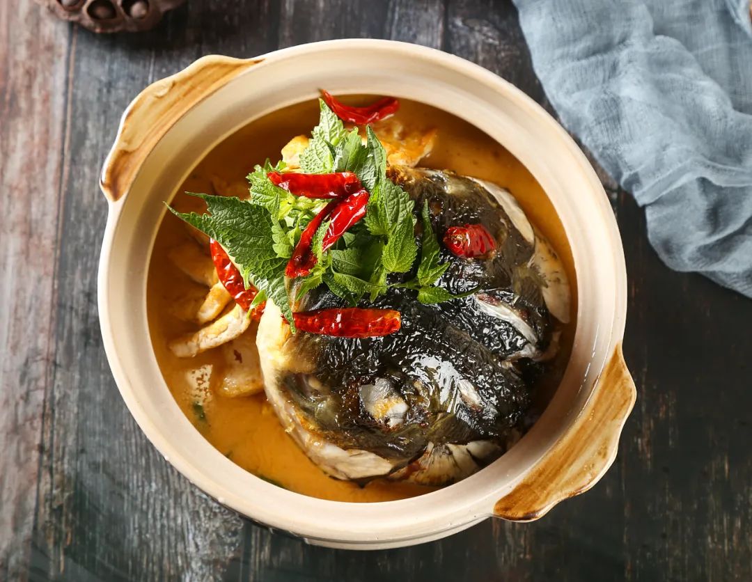 遂昌人爱吃鱼,对养鱼、烹鱼更有着莫大的耐心,以时间慢养好鱼,以自然成就特色。出挑的鱼头火锅,一改固有的清汤,红汤鲜辣的重口味是它的特色。