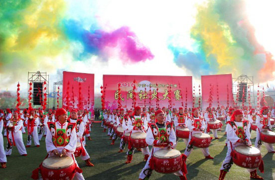2016中国?韩城黄河金三角民间社火大赛在陕西省文化厅指导下,由韩城市人民政府主办,中共韩城市委宣传部、韩城文体广电局、北京中艺视广国际文化传媒中心共同承办。大赛历时五天,先后举办了开幕式、社火表演比赛及城市巡游、社火走进韩城司马迁祠、党家村、三庙景区展演、2016中国·韩城黄河金三角传统文化与旅游发展高峰论坛等数项活动。