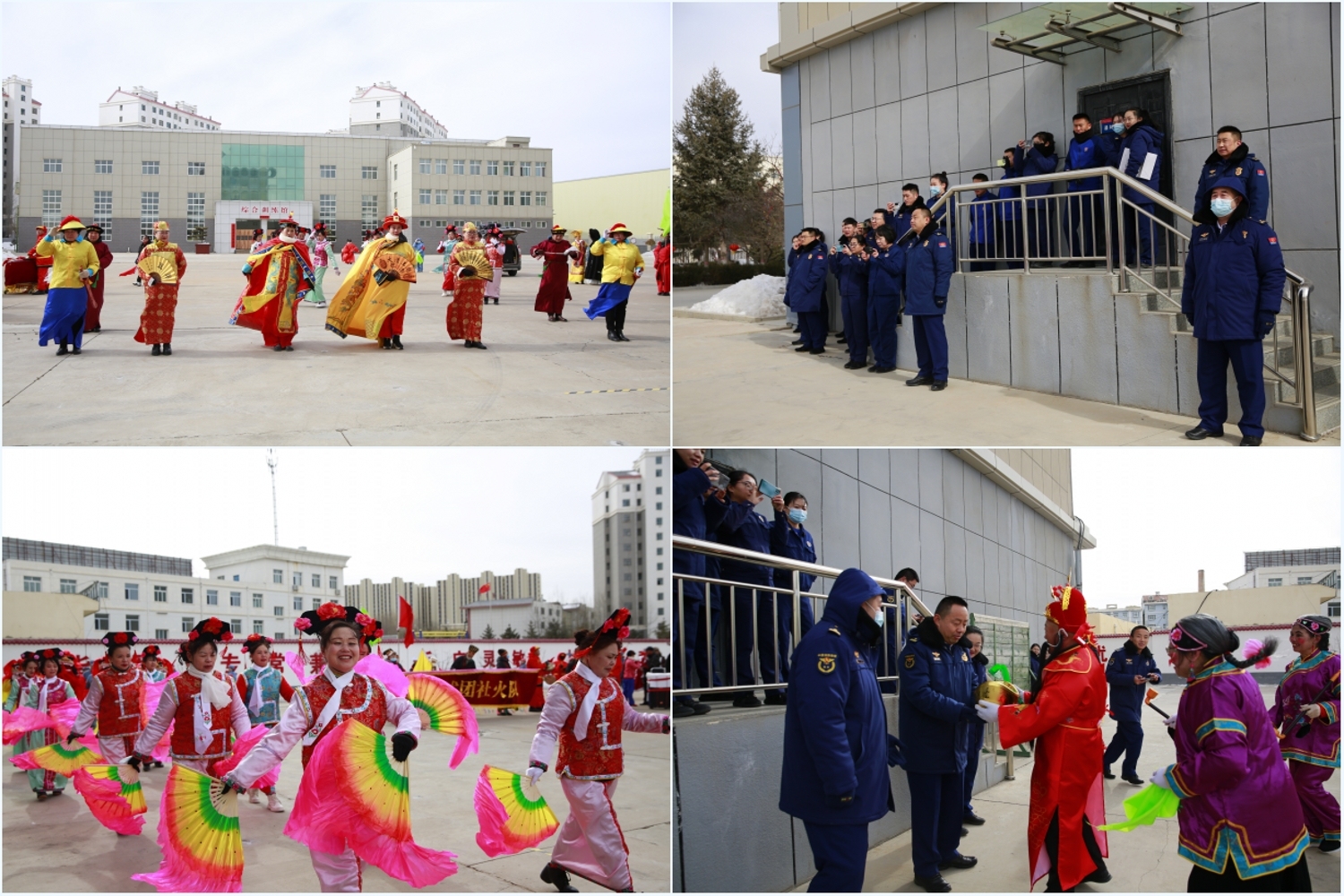 春回大地千山秀,日暖神州万木荣26日,农历正月初九,固原支队机关院内锣鼓喧天、鞭炮齐鸣、热闹非凡,一派佳节喜庆之景。固原市原州区萧关艺术团走进固原支队进行社火表演,敲起锣鼓、扭起秧歌,用别开生面的表演给全体消防救援人员献上节日的祝福,全体指战员兴高采烈地观看社火表演。