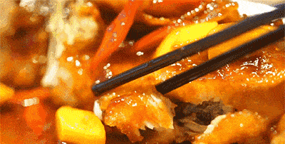 ▲色泽鲜亮,肉质细嫩,口感软糯的红烧黄河大鲤鱼,诱人极了。