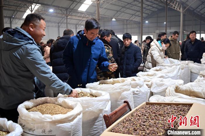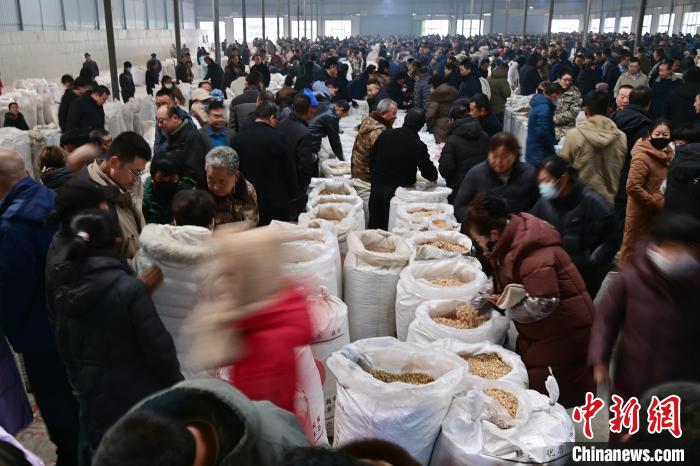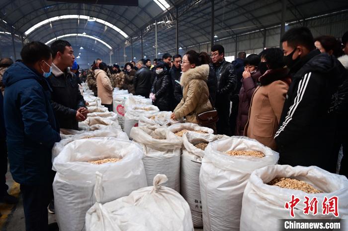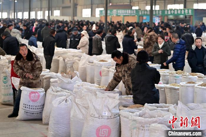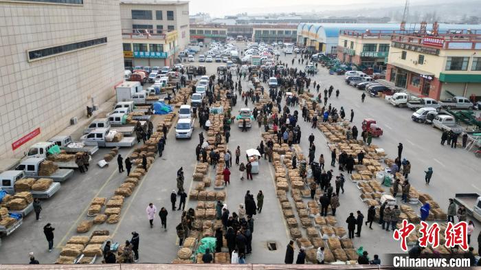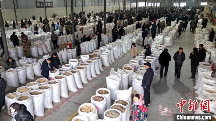 12月4日,在甘肃省定西市陇西县首阳中药材交易市场,来自全国各地的药商前来选购药材,现场交易火爆。陇西县地处黄土高原、青藏高原交汇地带,干而不燥、凉而不湿的自然条件,让这里成为天然优质药材仓库。当地中药材资源丰富,种植历史悠久,黄芪、党参等道地药材栽培已有上千年历史,素有“千年药乡”的美称。图为中药材交易市场内人头攒动。中新社记者 九美旦增 摄