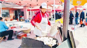 程家老味炉包不仅在泊里大集上有摊位,在“天天大集”非遗美食街区也有一家店面。“我今年71岁了,自从嫁到程家以来,已经做了近50年的炉包了。”程家老味炉包餐饮店外,经营人赵克香正在大铁锅前烧火做炉包。