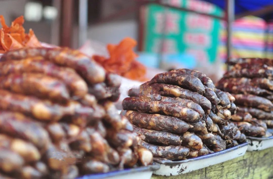 肠如其名,是黑色的。有肉丝感,特点是能看见明显的香料颗粒。隔水蒸或者用微波炉加热就可以吃了!此等过年的下酒菜,怎能在异地的年夜饭桌上缺席?