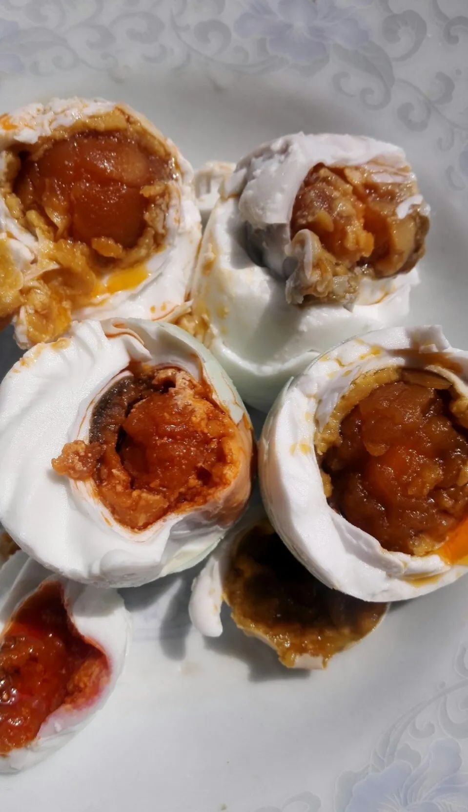 生活在微山湖中的鸭子诞下的鸭蛋经过人们独家秘制后,煮熟便成青衣白瓤、鲜嫩可口、咸淡适中、满心流油、人见人爱、花见花开!一切四瓣,就着馒头、酒吃,即便是没有大鱼大肉,心里也会暖暖的!