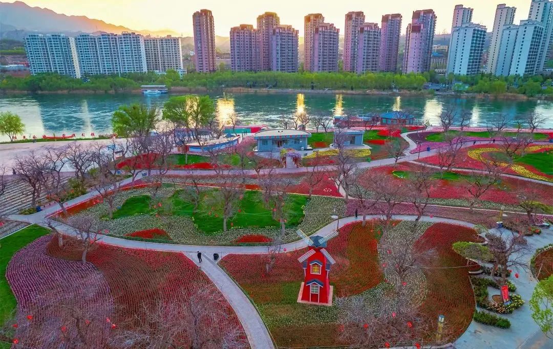 黄河花堤是永靖小城最浪漫的所在,各色郁金香争奇斗艳,五彩斑斓的花朵在微风中轻轻摇曳,与缓缓流淌的黄河水相映成趣,构成了一幅动人的画卷。
