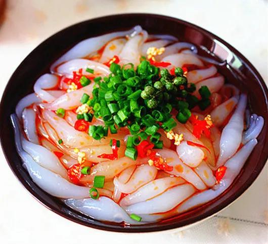 张掖的夏天,不能没有鱼儿粉。虽然在张掖熙熙攘攘的小吃街上各色美食比比皆是,但鱼儿粉一定能在其中占有一席之地。炎热的夏日里它可算得上最开胃的小吃了。用精细的蚕豆淀粉制成,它形似一条条白色小鱼,配上调料、芹菜,吃的时候吸溜一口,连带着汤汁送进嘴巴里,酸酸辣辣,消暑又解腻。