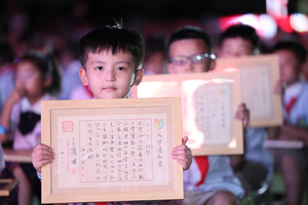 孩子们拿到书法名家亲自书写的入学通知书。这份别样的入学礼饱含着浓浓墨香,更蕴藏着学校深沉的关爱。