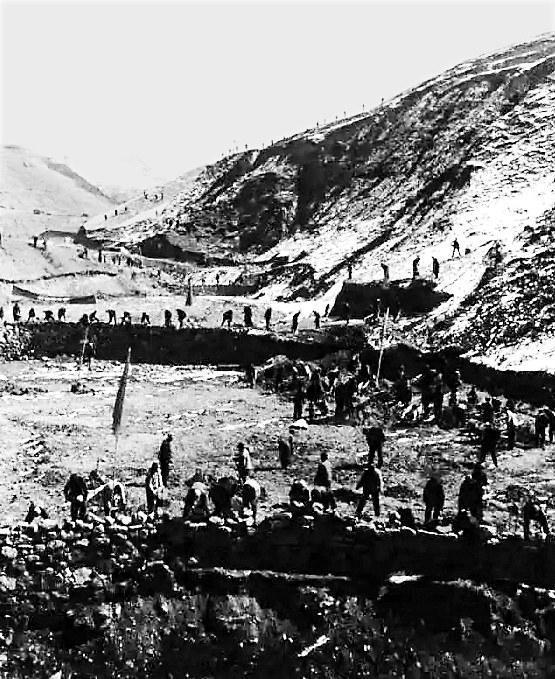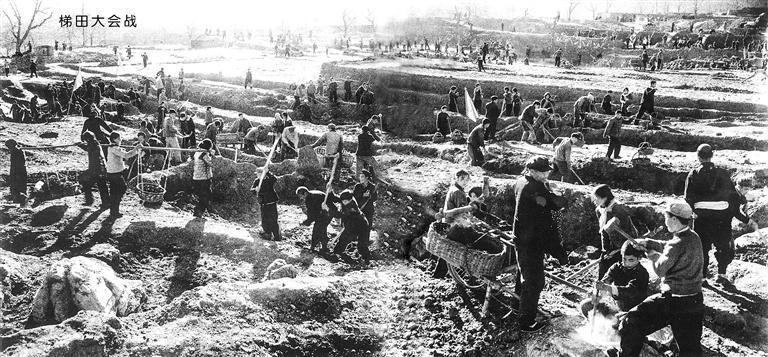 20世纪60年代,庄浪县郑河公社上寨村村民修建梯田。(资料图 来源:甘肃日报 )
