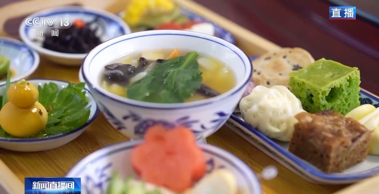 总台记者 马丽:除了欣赏隽秀风光、舒筋健骨,游客们来到这里也可以尝一尝清淡养生的素食。景区里特有的养生素餐,包括本地山野菜做的小食,还有时令蔬菜熬制的蔬菜羹,配合着荞麦饼、玉米、山药等粗粮主食,色彩丰富、营养均衡,主打一个清淡健康,让游客感受夏季的清新和舒爽。随着旅游旺季的到来,景区还新增了快闪活动、古风巡游等,带领游客感受崆峒山的独特魅力。针对老年人,还有门票优惠措施,60岁至69岁的游客可享半价,70岁以上游客免门票。此外,景区还配备了近百台摆渡车,分两条线接送游客上下山,或者直达山顶。