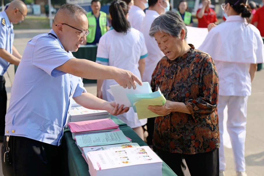 工作人员向群众发放宣传单资料  图片来源:仪陇县市场监管局