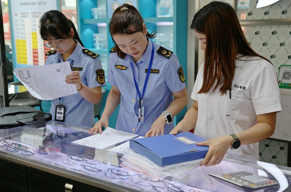 执法人员检查相关台账  图片来源:仪陇县市场监管局