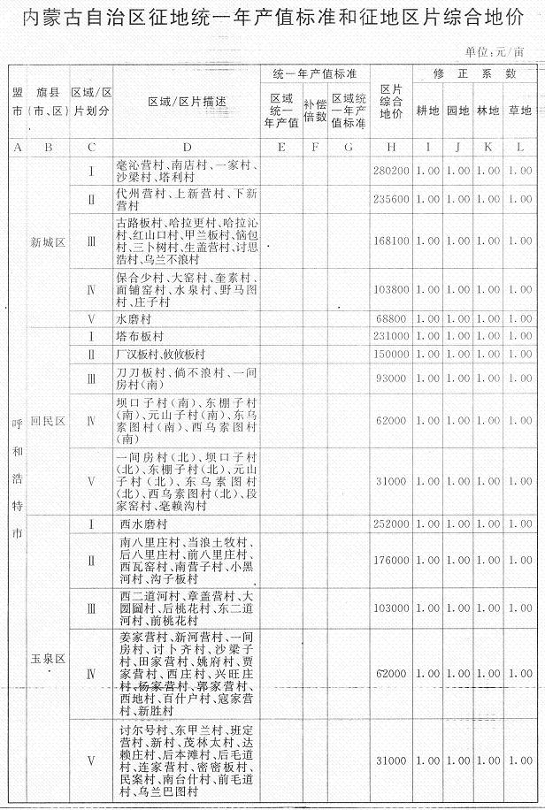 本刊将从本期开始对《内蒙古自治区征地统一年产值标准和征地区片综合地价》予以连续刊发,敬请关注。