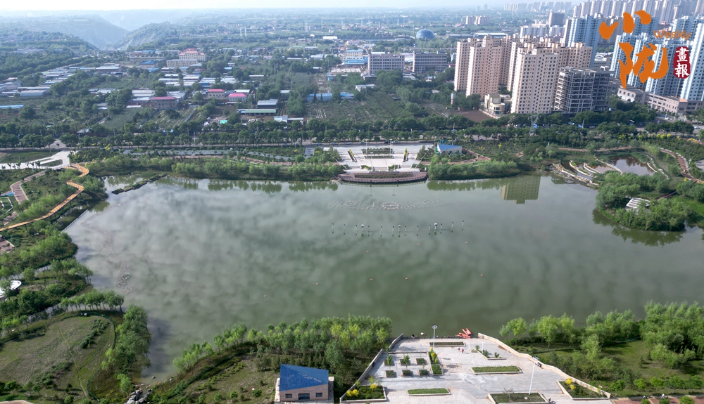 夏日的庆阳西峰,天高云淡,风光秀丽。从高处俯瞰,蒲河潺潺,蜿蜒流淌,两岸绿树成荫;黄土塬上麦苗青青、绿意盎然……