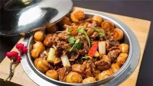 11.将高压锅焖好的羊肉连同汤水倒回炒锅。