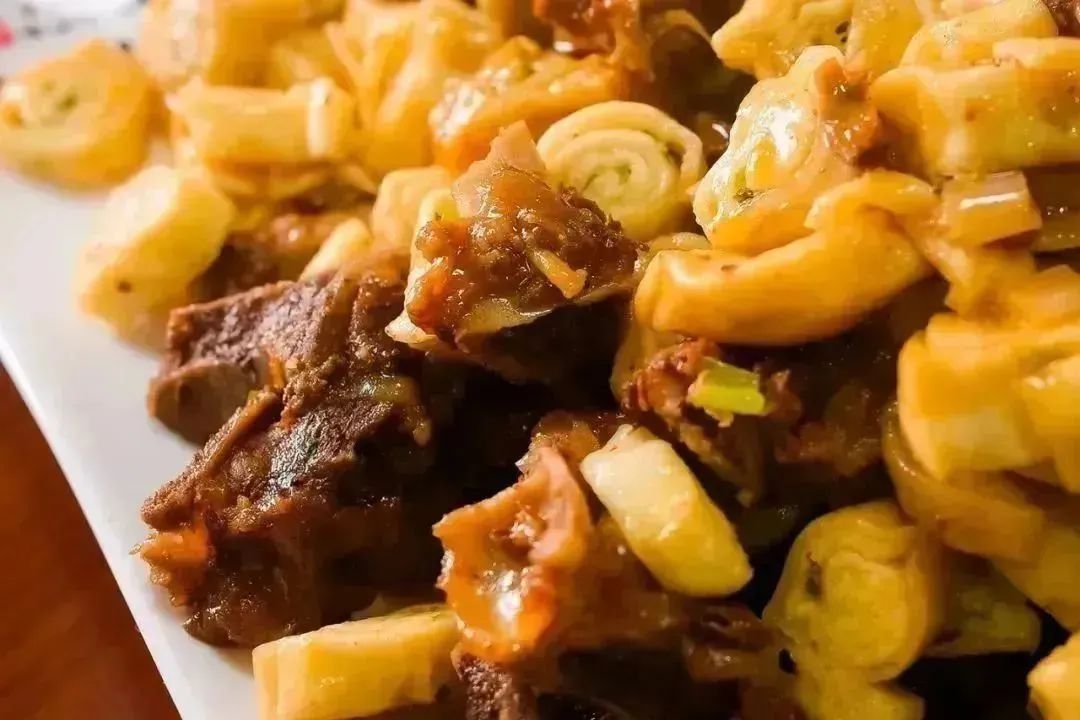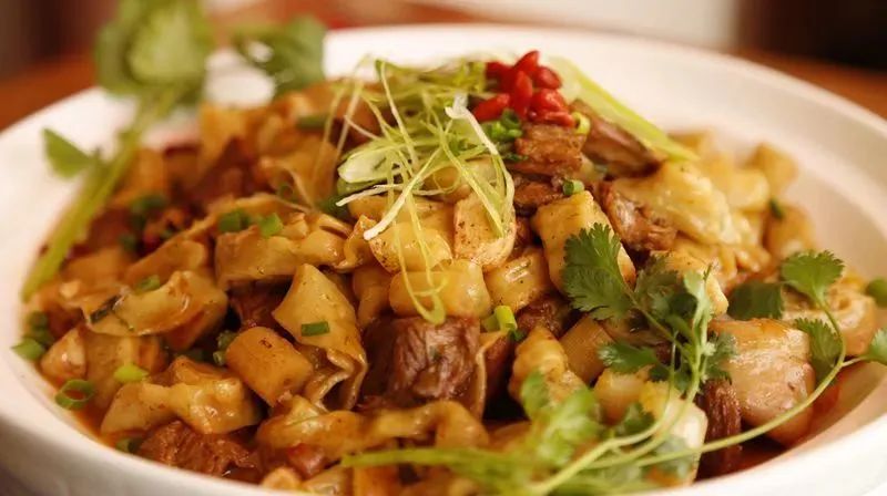 卷子一定要用发面制成,和羊肉一锅垫炒,而卷子又吸入了羊肉汤汁的鲜香,味道更是绝佳。这是羊肉与面食的完美融合,将河西面食的精美表现得淋漓尽致。
