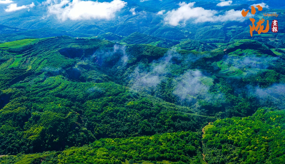 子午岭横跨陕甘两省,是黄土高原中部面积最大的落叶阔叶天然次生林。庆阳境内的子午岭山峦起伏,绿意盎然,云卷云舒间,万顷碧波在黄土塬铺展。子午岭林区是黄土高原目前保存较好的一块天然植被区,是黄土高原中部地带重要的生态公益林,被誉为陇东大地的“绿色屏障”和黄土高原的“天然水库”。