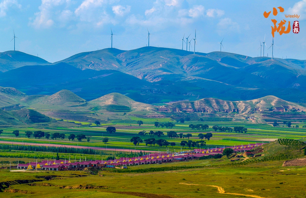 夏日的环县,风光旖旎,一座座风力发电机乘风转动、一排排光伏电板熠熠生辉、一条条高压银线临空飞跃……如今,这里已成为新能源投资的热土,“遍地开花”的新能源项目,勾勒出一派“风光”无限的壮丽图景。