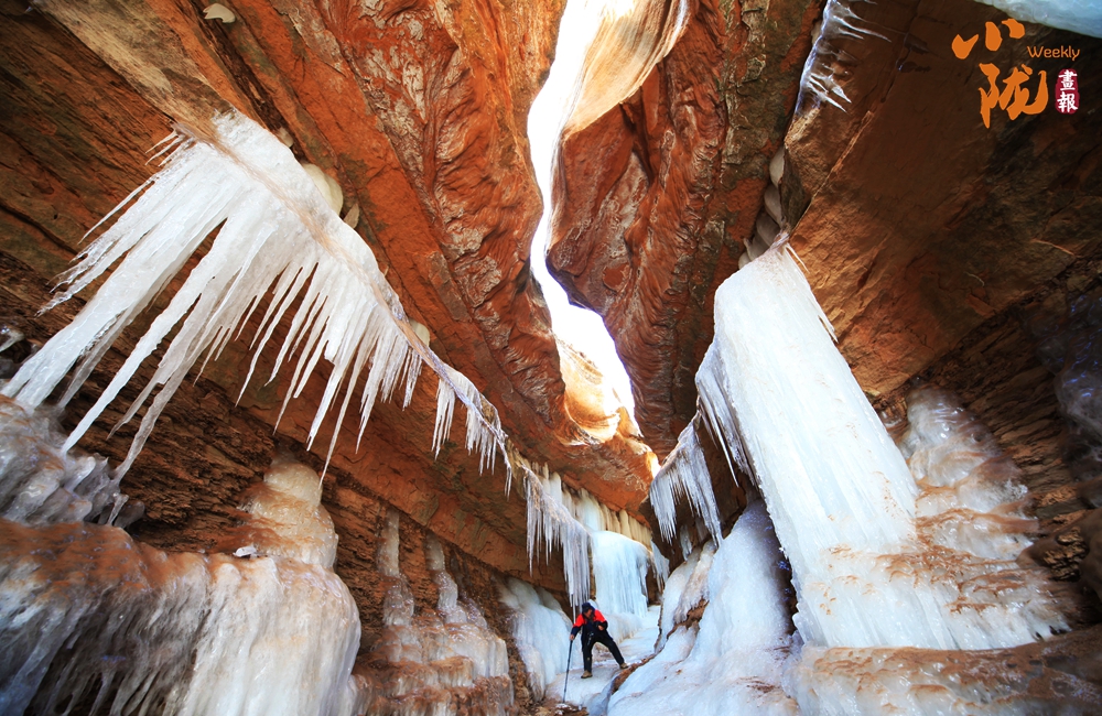 龙栖谷属典型的沟谷型丹霞地貌,峡谷内包含了完整的天井式、地缝式、巷道式、狭谷式四种丹霞地貌类型。谷内崖壁黑里透红,经过泉水冲刷后酷似烧饭的铁锅,被当地人戏称为“黑老锅”。每逢冬季,峡谷内因渗水形成冰挂、冰瀑景观,如同一座“地下冰宫、天然冰库”,成为周边群众冬季旅游的首选打卡地。