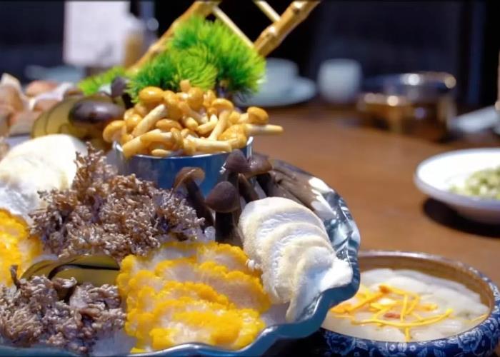 第三“锅”:山珍菌汤锅。加入利州香菇、青川竹荪等各类山珍鲜菌,辅以苍溪川明参、青川天麻等药材,菌香浓郁,回味悠长。再加入白龙湖和亭子湖生态鱼,小火慢煮,汤鲜味美,养生滋补。