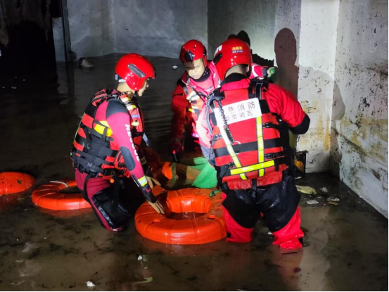 据了解,在龙山县龙领国际地下停车场,消防人员经过长时间排水后,利用橡皮艇进入地下建筑物内部,成功搜救出被困约20个小时的人员。