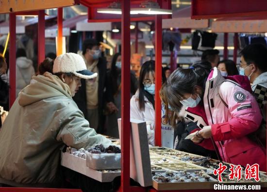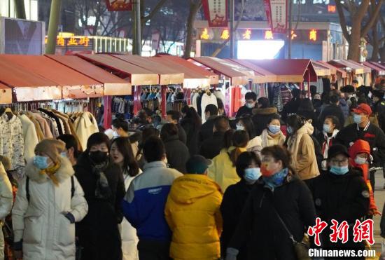 1月6日晚,甘肃兰州,市民在张掖路步行街逛夜市。近日,兰州市知名夜市永昌路夜市近日搬迁至张掖路步行街开始试营业,高峰时段夜市人流如织。