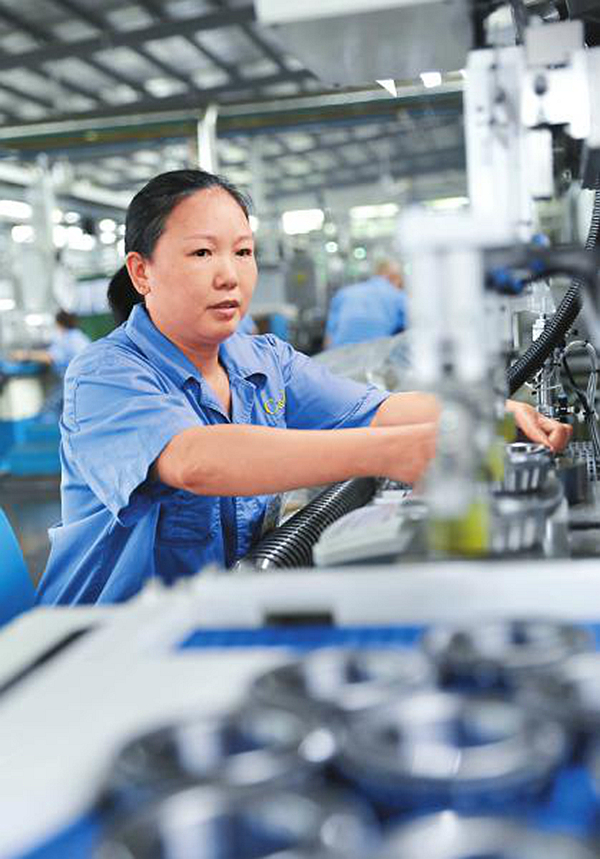 7月12日,位于南充市的四川人本轴承有限公司生产线上,工人忙着加工零件。黎涛 摄(视觉四川)
