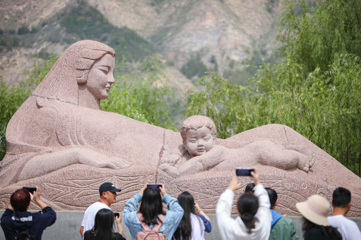 这是9月8日在兰州市七里河区拍摄的黄河母亲雕塑。新华每日电讯记者 郎兵兵摄