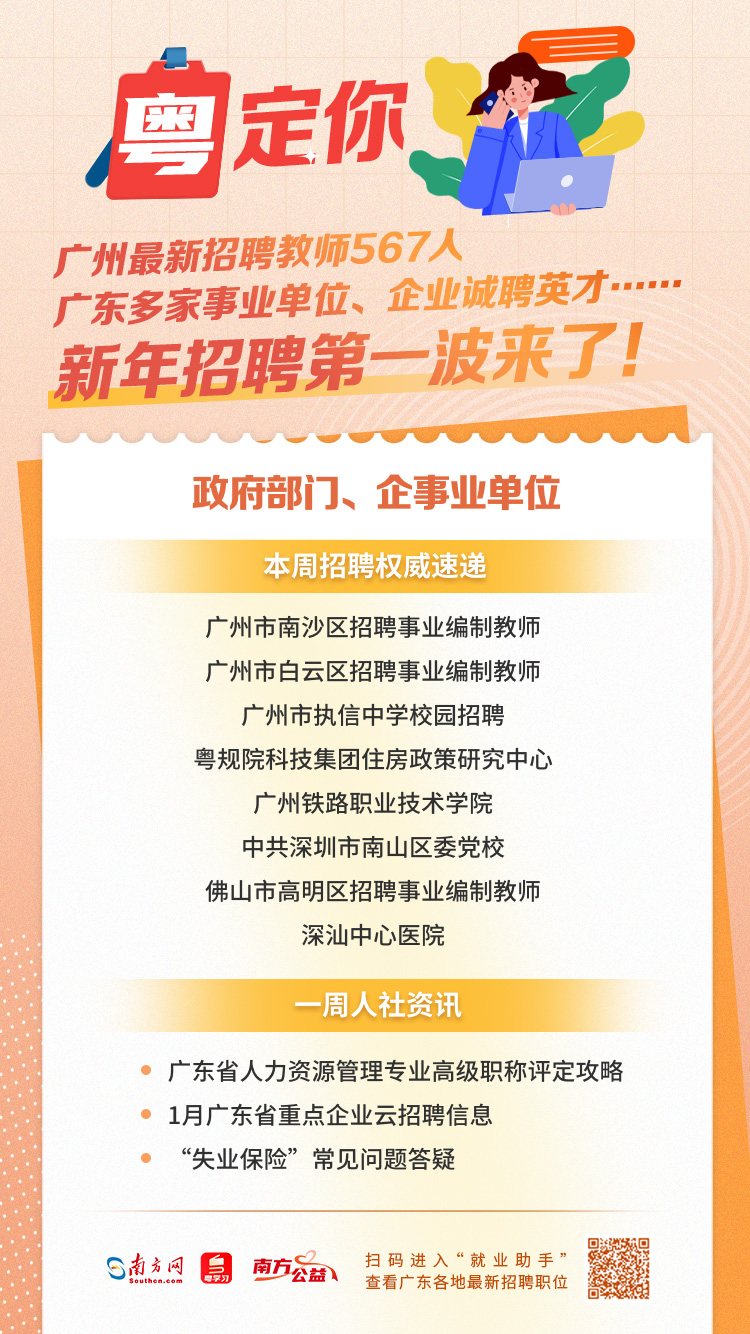 南方网、粤学习客户端本周为你梳理汇总的新年第一期就业资讯来了!