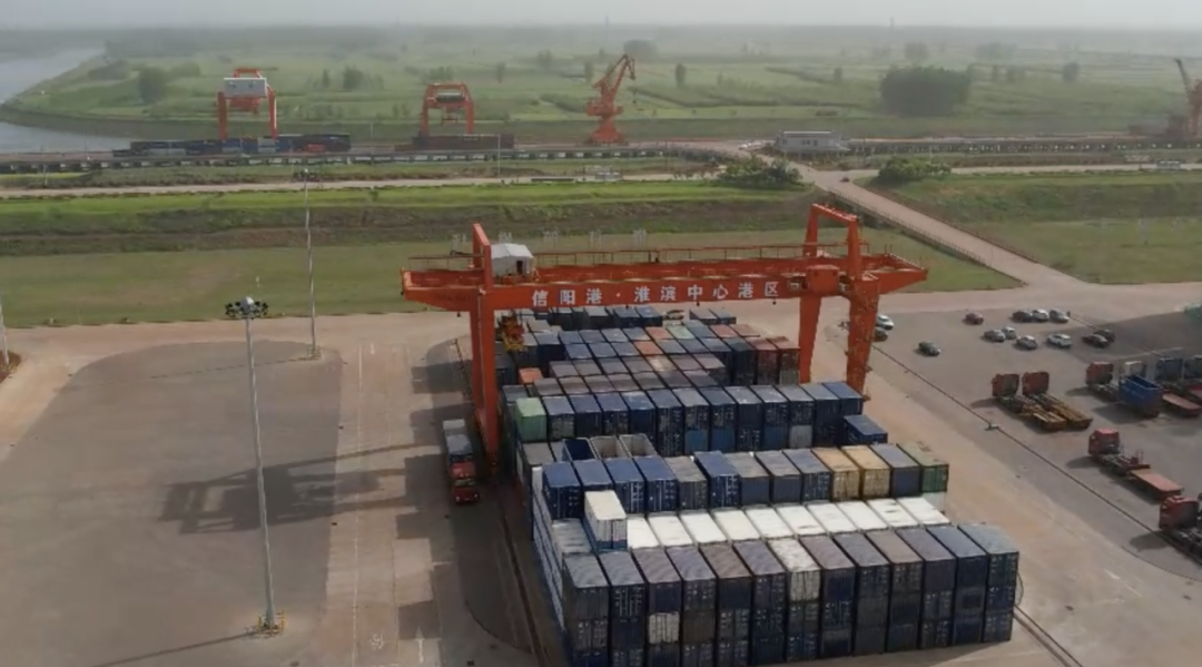 来到淮滨中心港的集装箱码头,映入眼帘的是一片活力四射的景象。巨大的“桥吊”设备正往船上吊装集装箱,从铁矿石到家具,从粮食到纺织品,来自世界各地的货物在这里汇聚,又从这里出发,通向五湖四海。港口的发展,不仅带动了当地的物流业,也为淮滨的经济发展注入了强劲的动力。