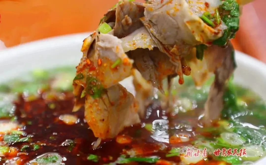 庆阳清汤羊肉:以新鲜的陇东黑山羊或奶羊羊肉为底料,搭配鸡髓和羊骨头熬制的高汤,佐以花椒、桂圆等丰富配料,汤清味鲜,辣子油红亮诱人。吃的时候配上厚度适中的活面烙馍,滋味十足。