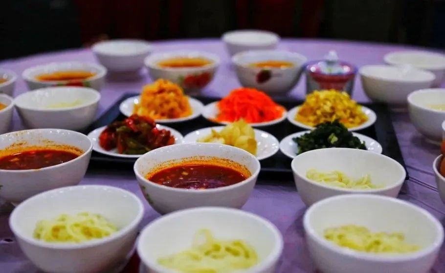庆阳暖锅:秋冬时节的佳品,底层铺着萝卜片和白菜,中间夹杂着鸡血片、猪肠、香菇等食材,再盖上豆腐片,加入粉条,最上面码放着排骨、丸子等肉类,灌入汤后用木炭加热,一家人围坐食用,温暖又满足。