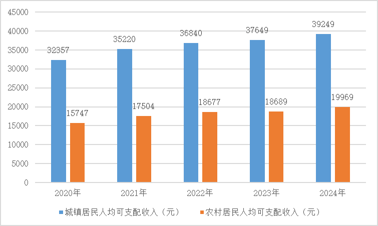 按常住地分,全年城镇居民人均可支配收入39249元,比上年增长4.3%;农村居民人均可支配收入19969元,增长6.9%。