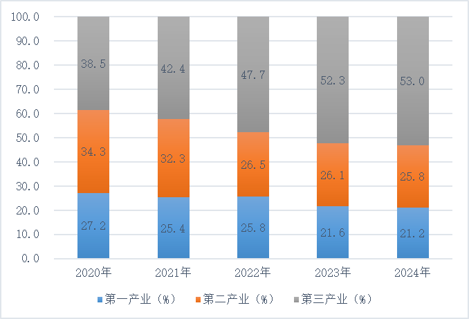 图2 2020-2024年仪陇县三次产业增加值占地区生产总值比重