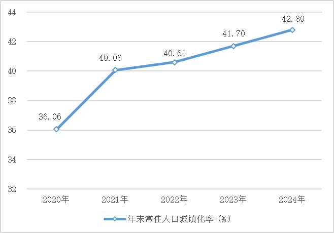 图6 2020-2024年仪陇县年末常住人口城镇化率